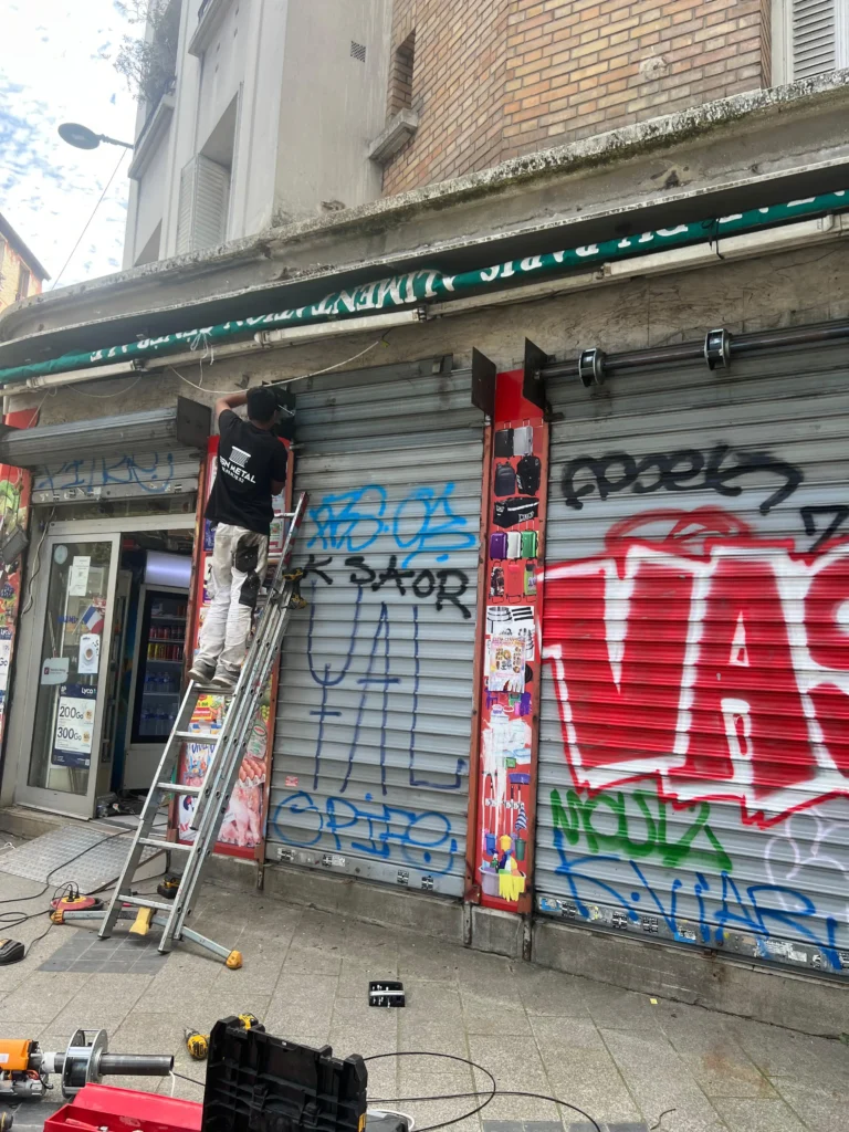 Nous intervenons sur des cas complexes, comme la sécurisation de l’alimentation générale (photos de pose de rideau métallique sur surfaces taguées) ou l’installation de systèmes mécaniques précis (photos des mécanismes de volet roulant). Quel que soit votre besoin à Asnières – que ce soit la réparation d’un volet roulant ou l’installation d’un nouveau rideau métallique – nos réalisations parlent pour notre qualité de travail.